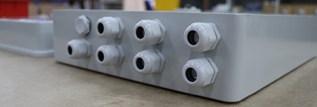 They have cable gland entry at the bottom with a Vent. Inside is a Metal Back plate fitted with a Din Rail with room for a RCD.