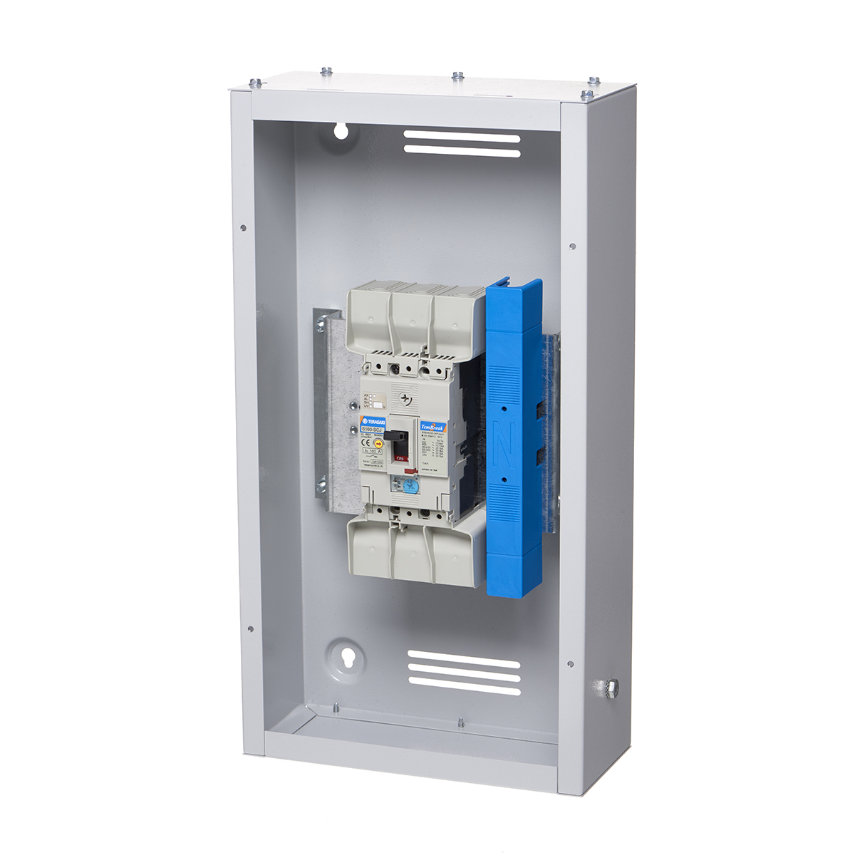 Europa's highly successful enclosed Safe Switch range has now been further strengthened by the addition of the equally reliable and proven Terasaki range of MCCBs and CBRs (MCCB + RCD). Terasaki protection devices are supplied in IP4X robust metal enclosures with a light grey (RAL 7035) epoxy coated finish and designed for ease of installation. If required, devices can also be supplied separately for mounting in control or distribution panels. The MCCB and CBR ranges include 4 pole or 3 pole plus neutral link devices. MCCBs come in four ratings 125A, 160A, 250A and 400A, whilst CBRs are rated up to 250A. In addition, a wide range of accessories includes auxiliary and alarm changeover switches, under voltage and shunt trips, extension bars, terminal covers and locks, plus toggle locking devices.